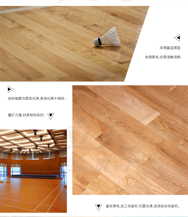 由于羽毛球馆运动木地板是由整块木料制作而成,所以羽毛球馆运动木地板厚度都是统一为22mm,22mm的厚度确保地板的耐磨性,并且由于羽毛球馆运动木地板品种材质硬密,防腐蚀虫性能比较强,所以羽毛球馆运动木地板在使用多年以后基本完好无损。